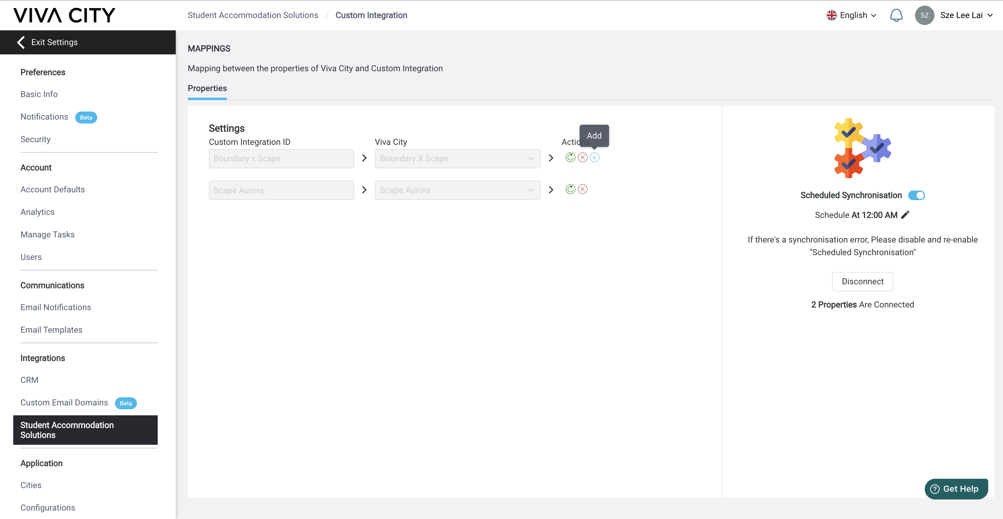 - After you have completed the updates for all the properties. Please navigate to Settings > Integrations > Student Accomodation Solutions > Custom and click "Continue". You can select all the properties and click "Resync" button to pull in the new information.